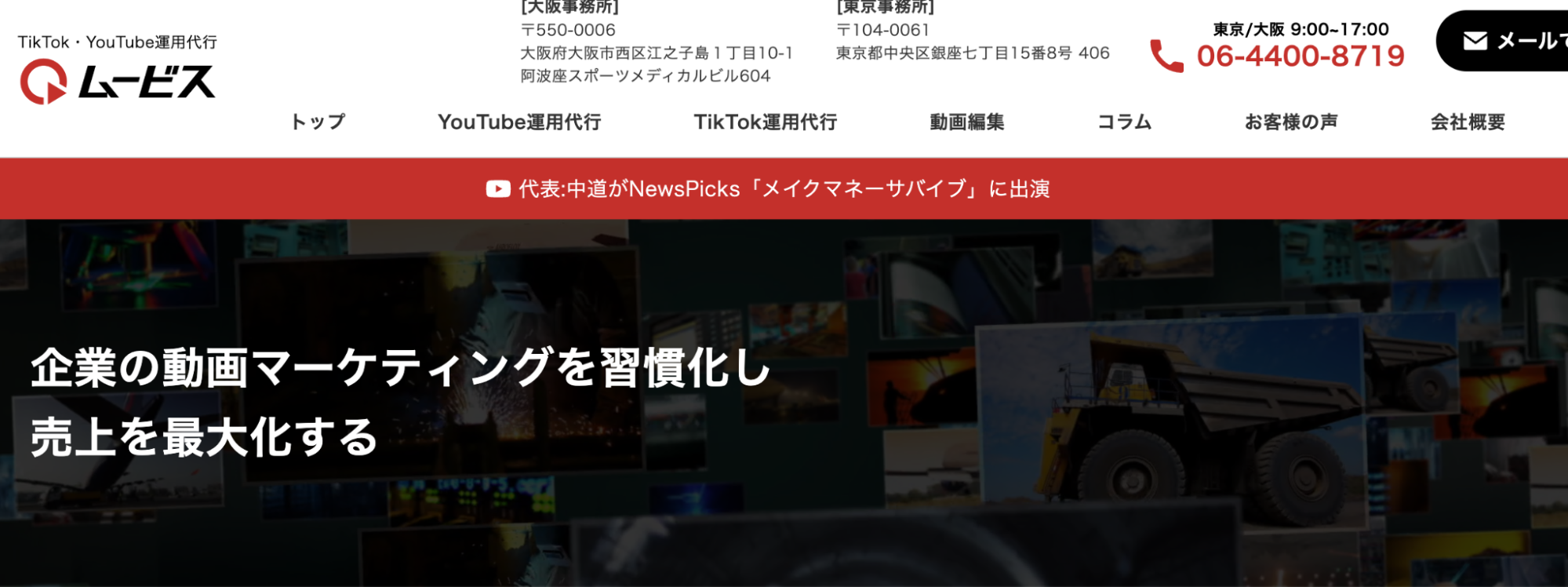 MOVISは東京・大阪を拠点として、TikTokとYouTubeの運用代行を手がける会社です。リサーチ・企画・台本作成・編集・投稿まで一貫対応できる体制を整えており、クライアントのリソースに応じて必要な部分だけを委託できる柔軟な運用スタイルを提供しています。