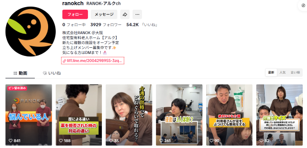 介護業界の株式会社RANOK(https://www.tiktok.com/@ranokch)は、以下のような動画で、具体的な働き方や職場のリアルを伝えています。