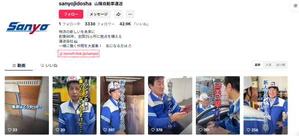 山陽自動車株式会社(https://www.tiktok.com/@sanyojidosha)は、SNSを活用して応募者層の若返りや多様化に成功しています。
